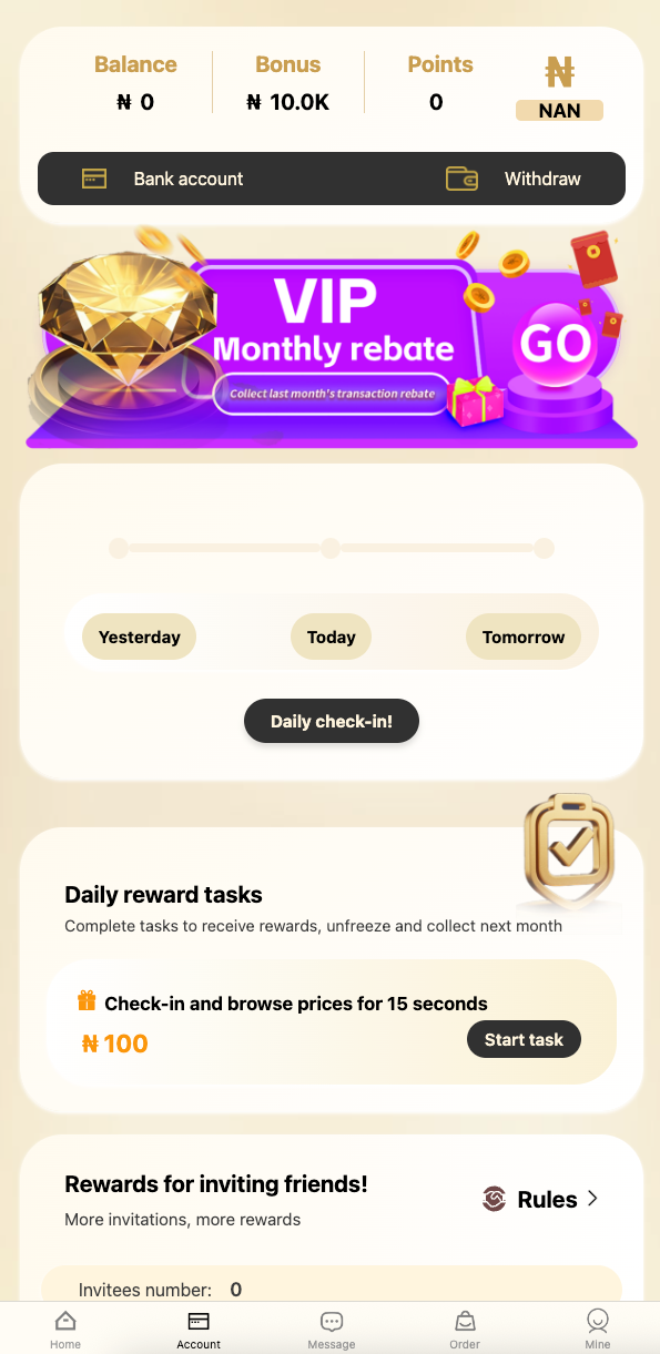 New users will receive a reward of ₦10,000 upon registration, and can withdraw after completing the task! Please enter the APP or H5 version to view details.